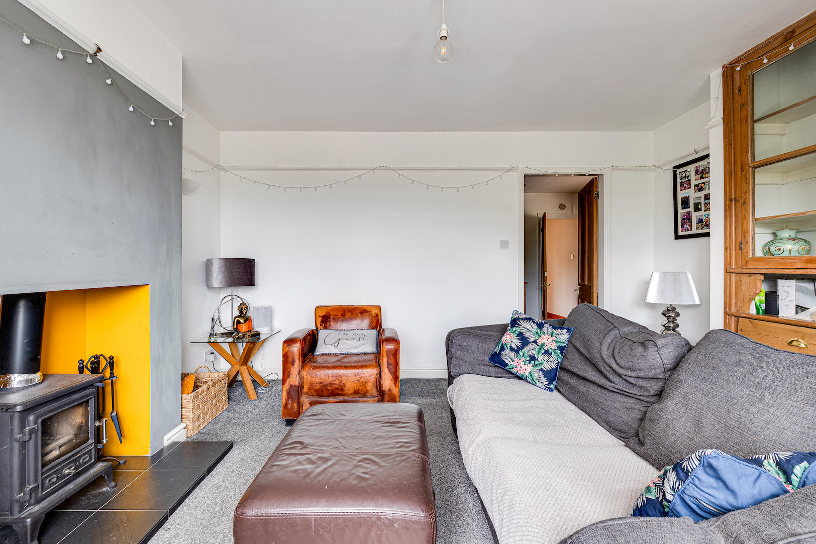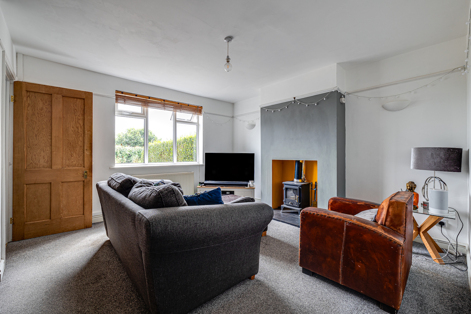 - Log burner right in the heart of the living room creating a lovely cosy atmosphere.