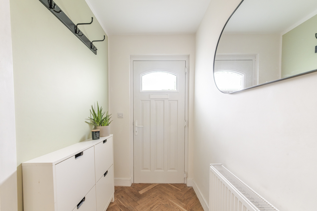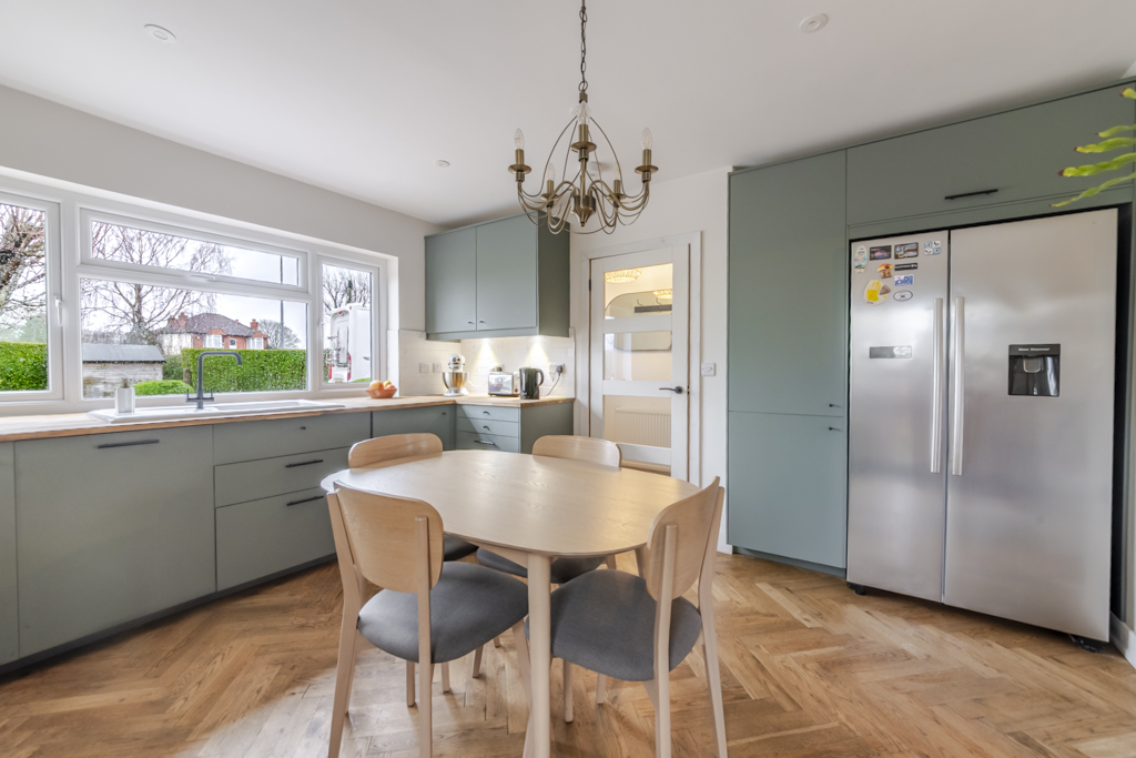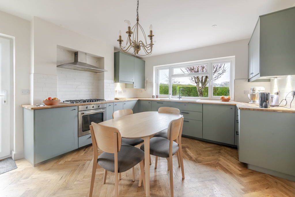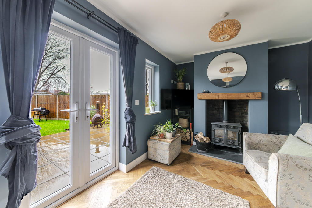 On entering the property, the kitchen is positioned to the front and has been renovated to a good standard, offering a modern and functional space with direct access to the rear garden. To the rear of the property is a comfortable living room, featuring a cosy fireplace and enjoying views out to the garden, making it an ideal space to relax. Herringbone flooring runs throughout the downstairs, adding a stylish and cohesive finish to the ground floor.
