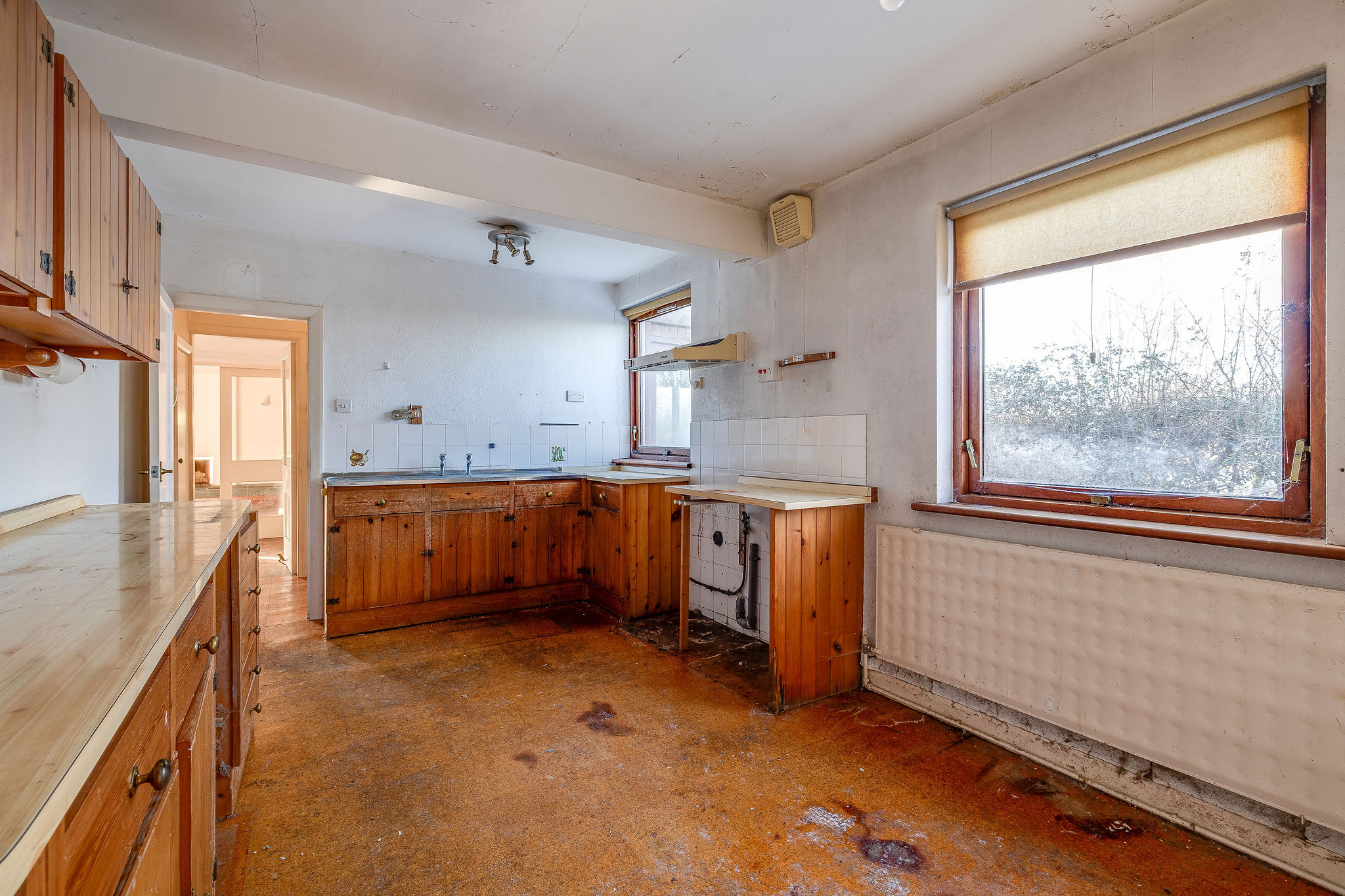 - Ground floor bathroom, utility room, kitchen and dilapidated conservatory with views to the rear