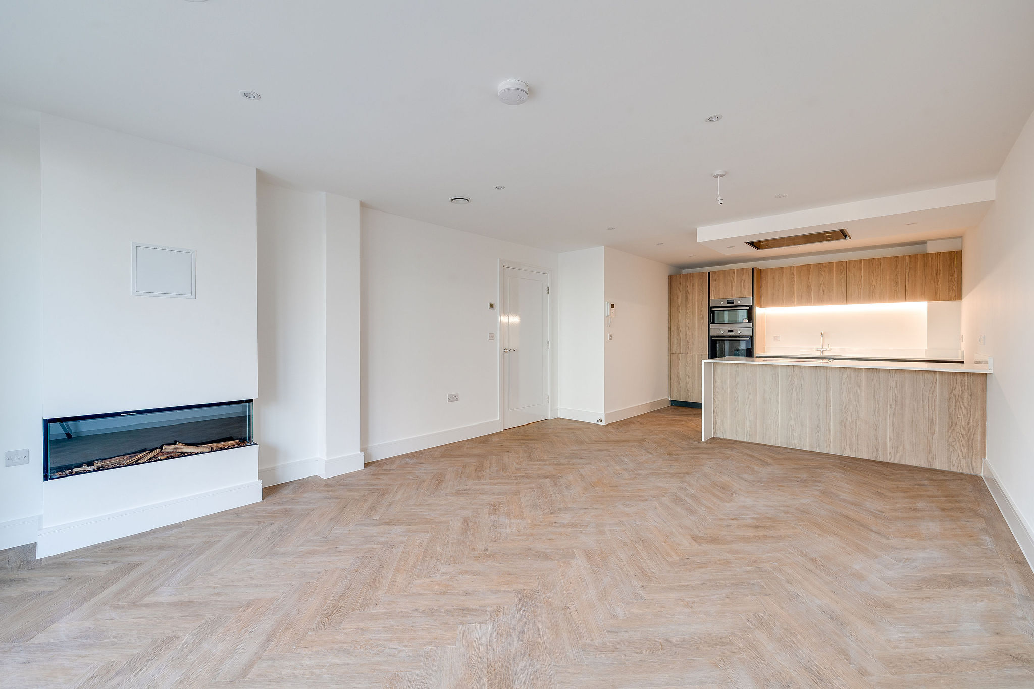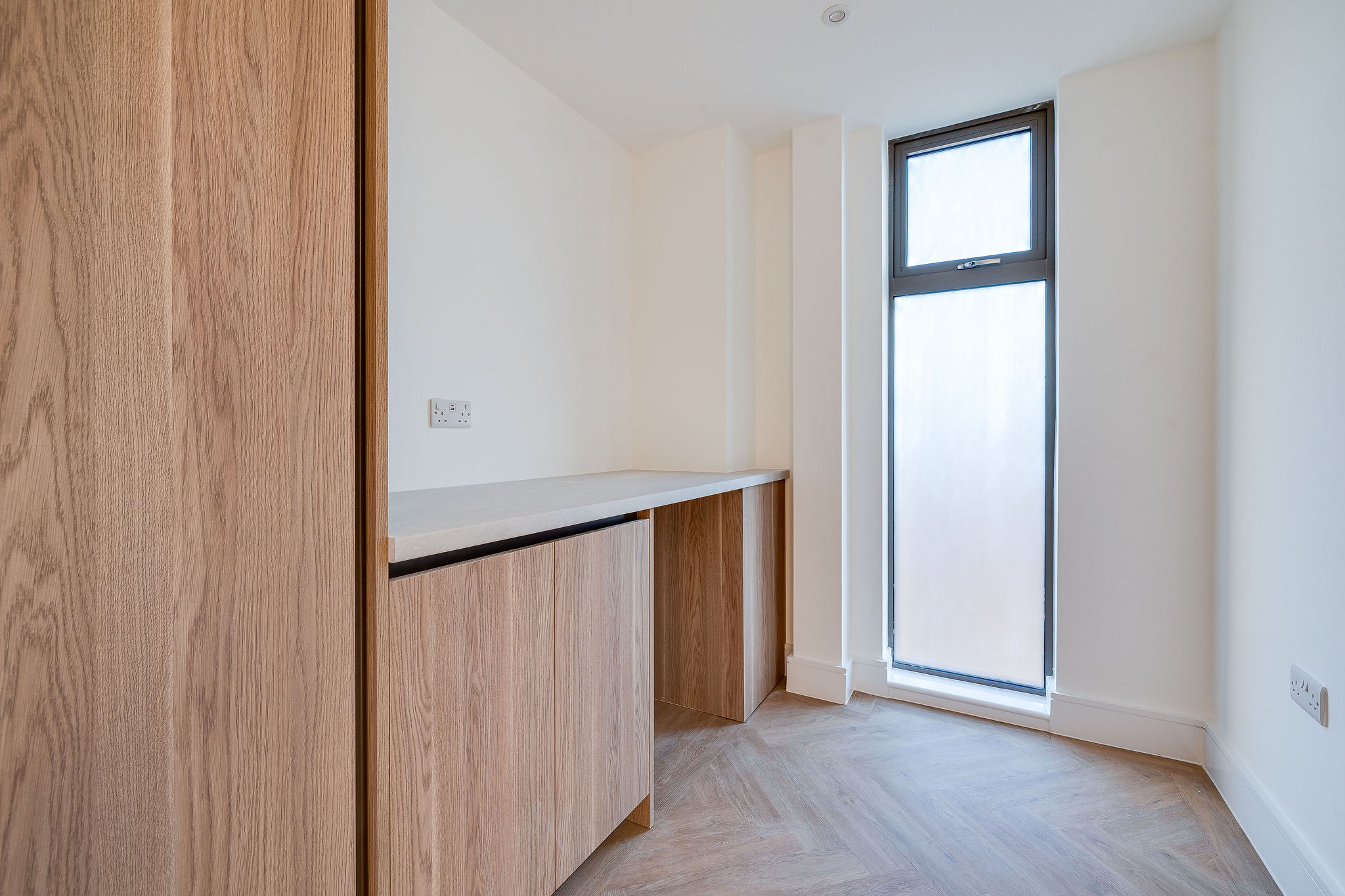 Each kitchen is a perfect blend of form and function. Sleek Porcelanosa handleless cabinetry pairs beautifully with white quartz worktops and a subtle oak veneer finish. Integrated AEG appliances, a wine cooler and an instant boiling water tap elevate daily routines into moments of quiet luxury. The separate utility room keeps life organised and clutter-free, while clever storage ensures that every inch of space works as beautifully as it looks.