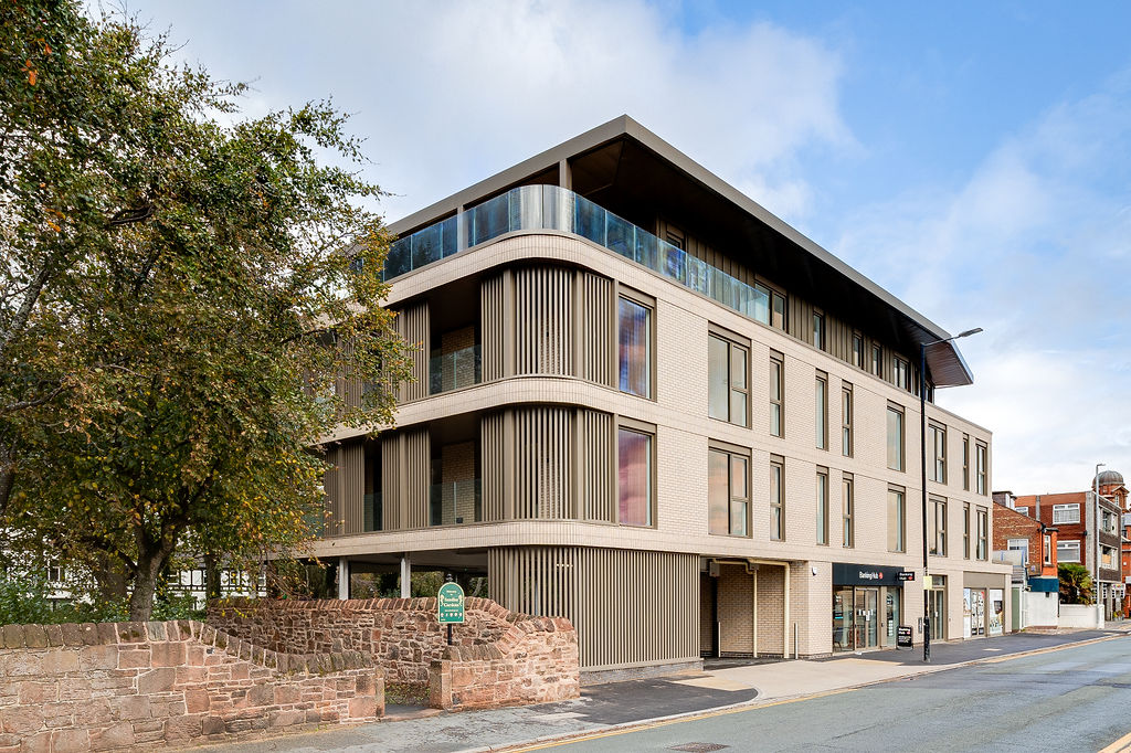From the moment you arrive, Hilbre Sands feels different. Its striking façade, finished in bespoke brick-slip cladding and muted bronze detailing, sits naturally within its surroundings. Frameless glazed balconies and slatted cladding soften the architecture, creating movement and light while ensuring privacy for each home. Inside, every apartment has been designed to flow effortlessly, balancing beauty and practicality with the ease of modern living.