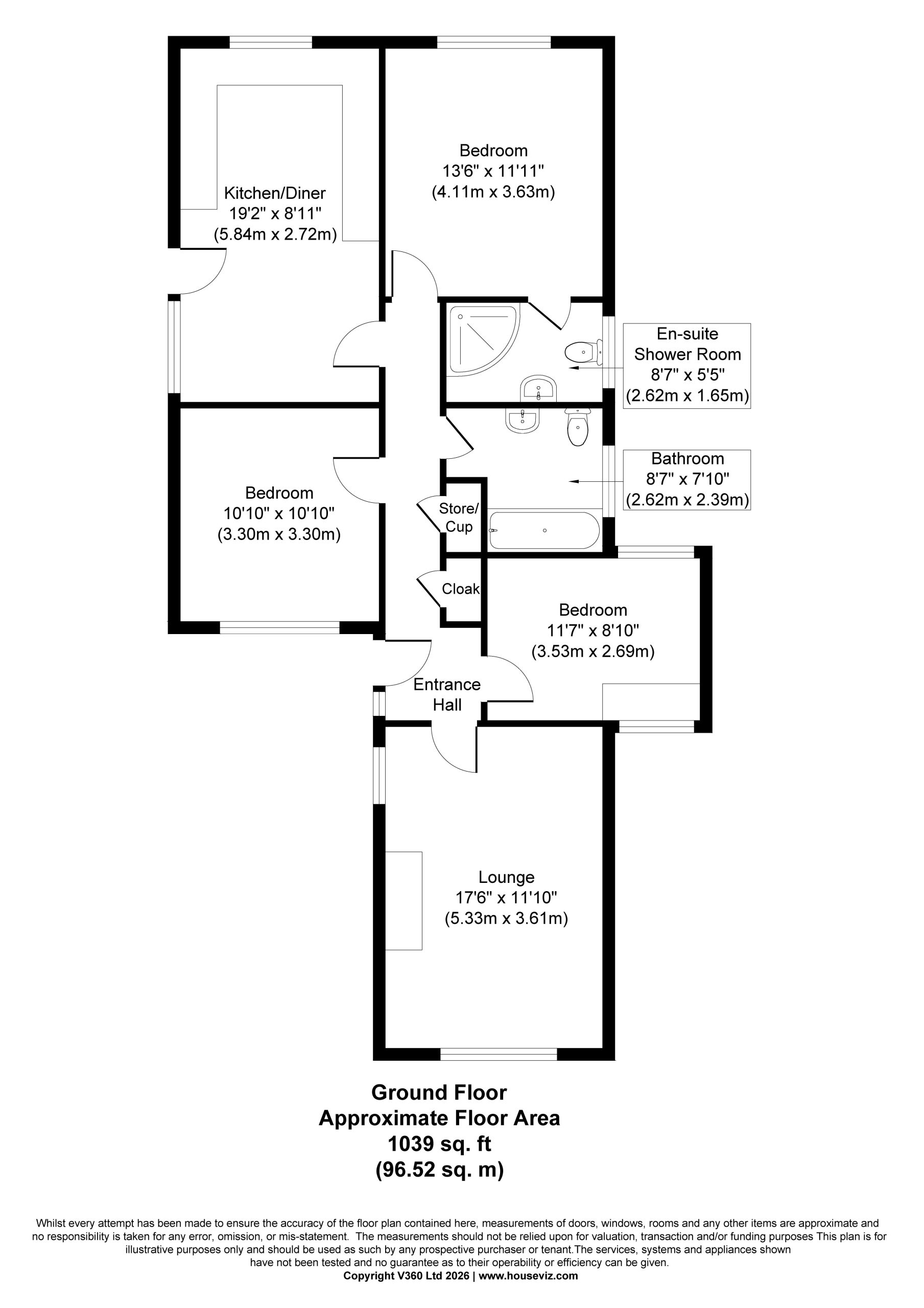 - Three double bedroomed detached bungalow with a private and well enclosed rear garden
