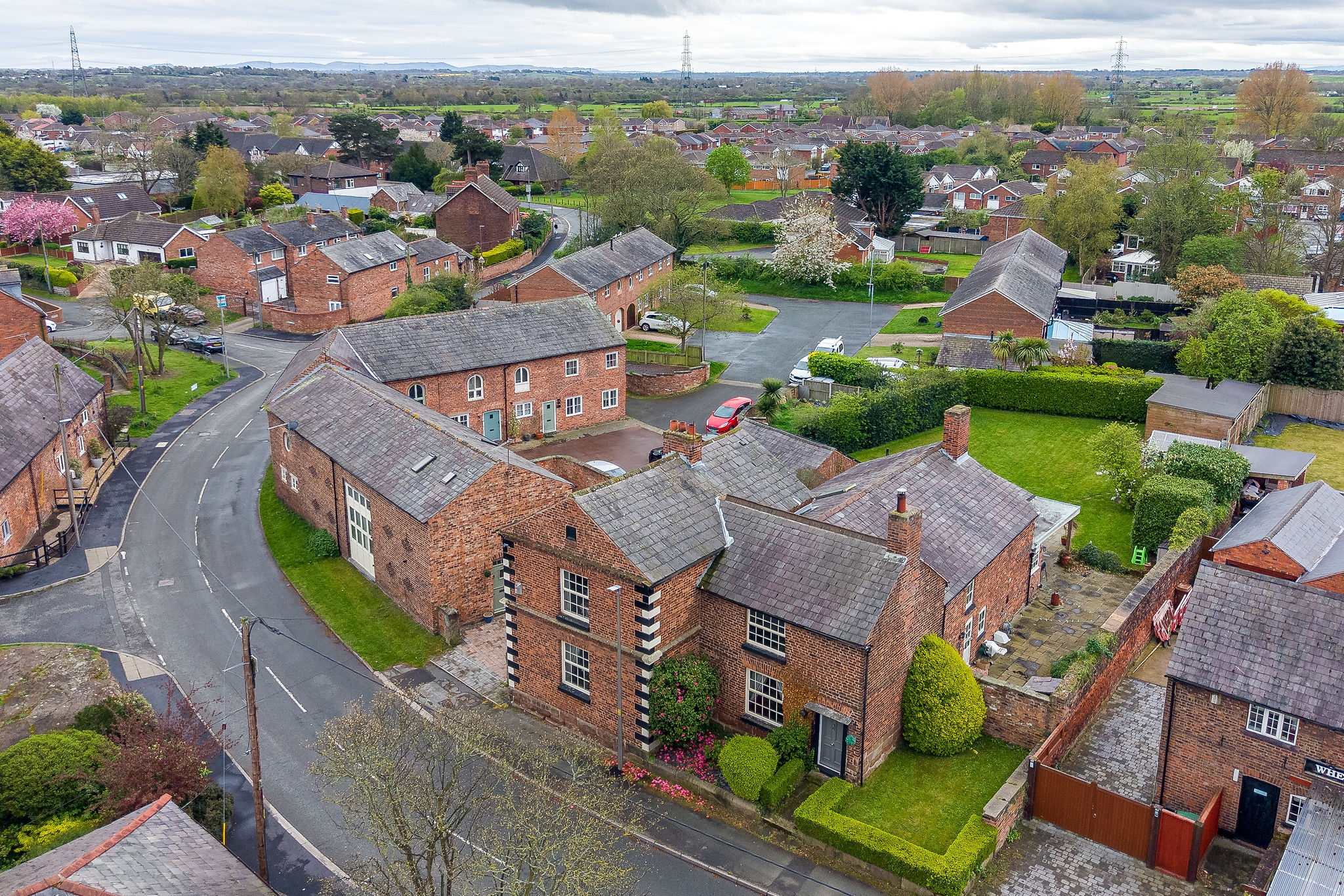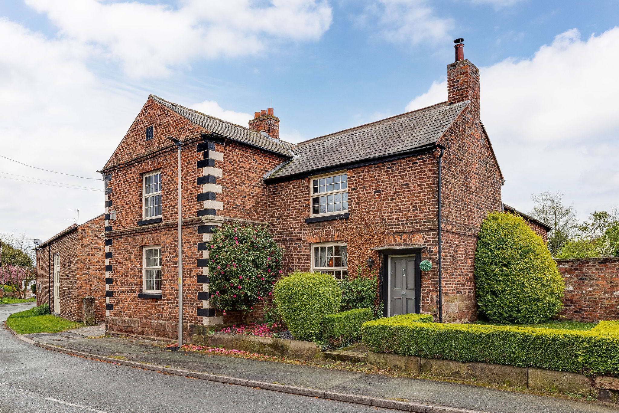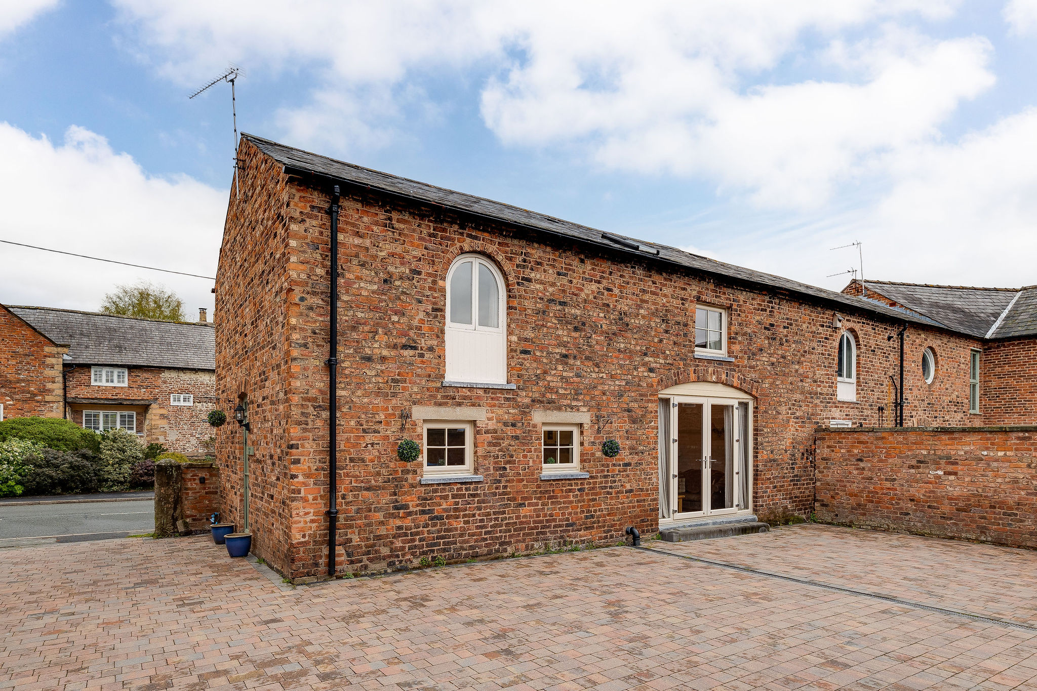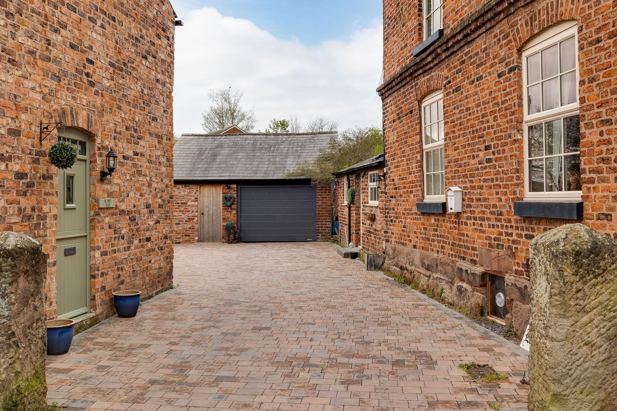 Approached through striking sandstone gate posts, the property immediately makes a memorable first impression. A generous parking courtyard provides ample space for multiple vehicles and access to the garage, while the separate annexe sits neatly alongside the main house.