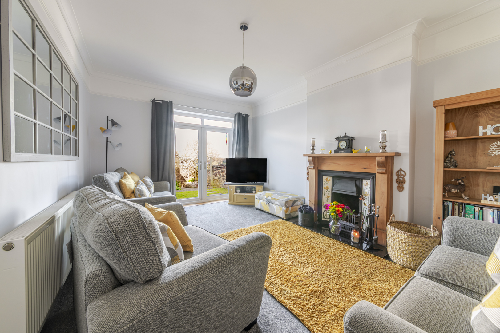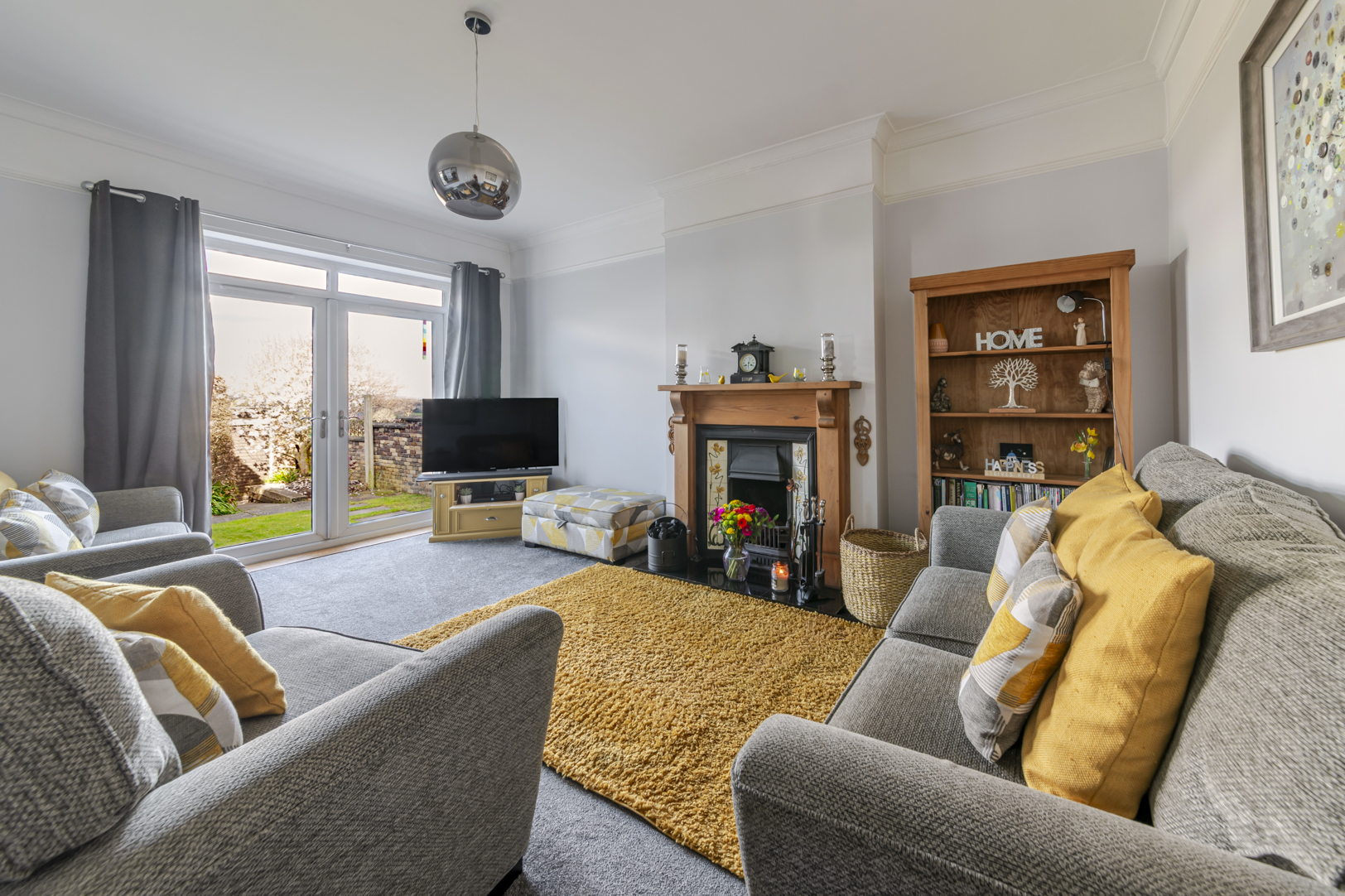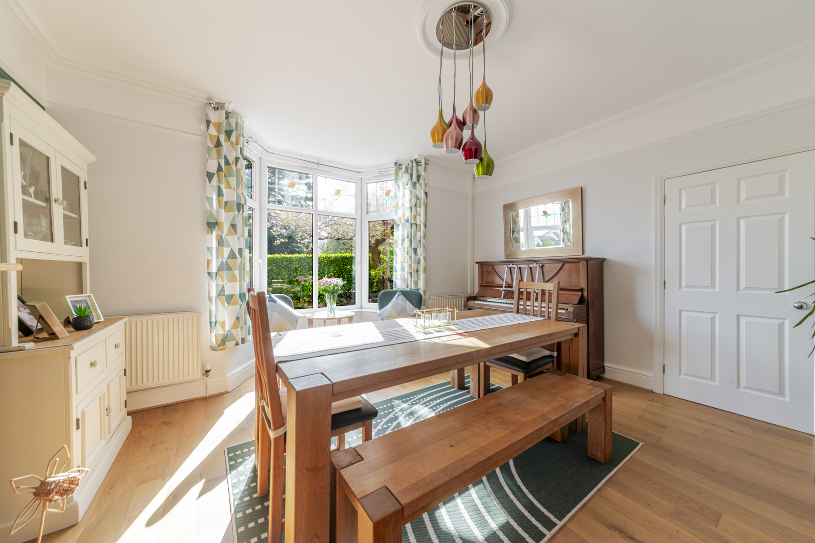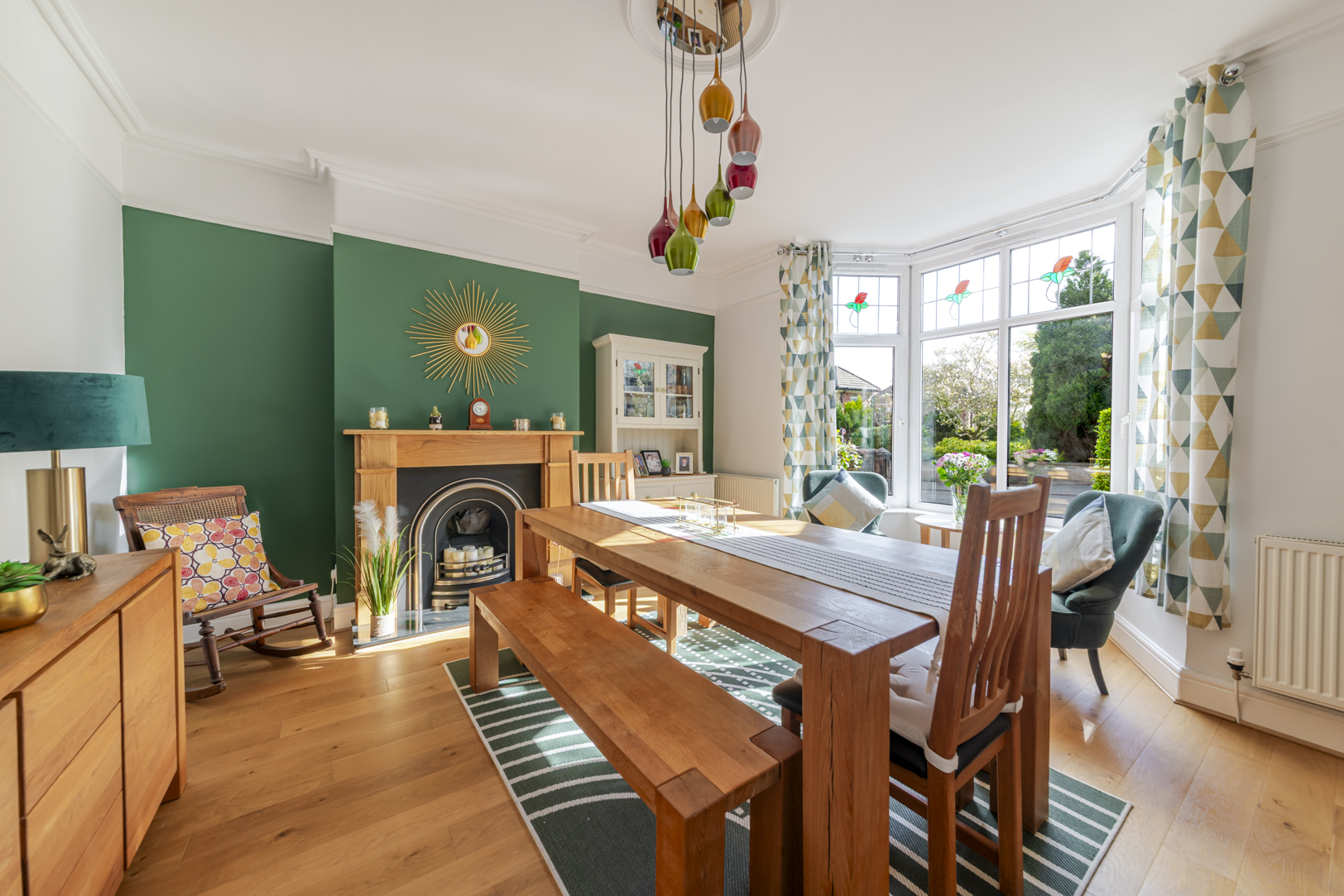 Internally, the home immediately impresses with a spacious and welcoming entrance hall, setting the tone for the accommodation throughout. To the front, a beautifully proportioned reception room featuring a bay window and fireplace is currently used as a dining room, though it offers flexibility to suit a variety of uses. To the rear, a second reception room provides a cosy living space, complete with patio doors opening onto the garden and enjoying far-reaching views.