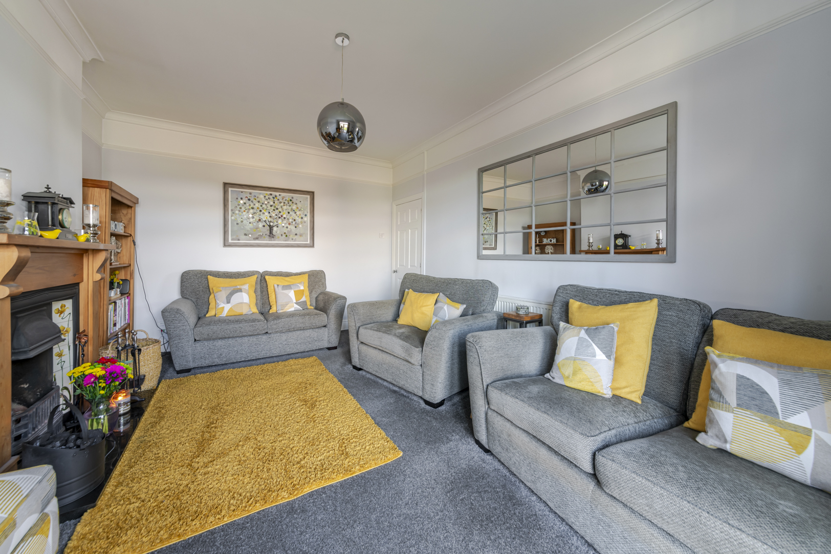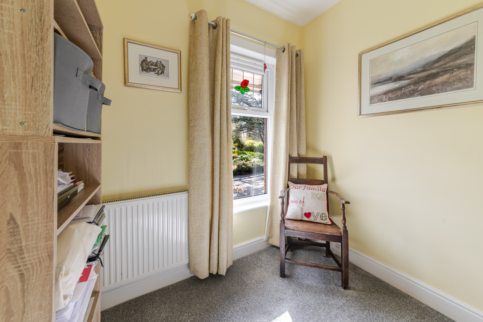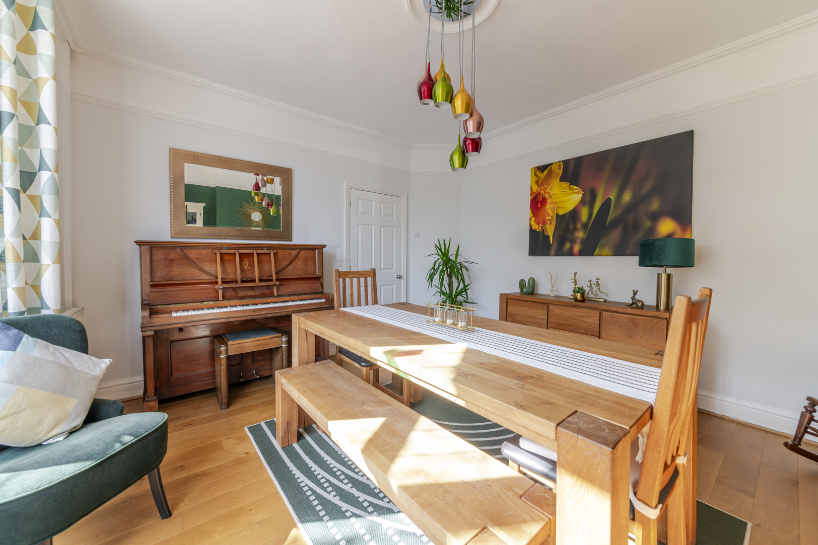 Internally, the home immediately impresses with a spacious and welcoming entrance hall, setting the tone for the accommodation throughout. To the front, a beautifully proportioned reception room featuring a bay window and fireplace is currently used as a dining room, though it offers flexibility to suit a variety of uses. To the rear, a second reception room provides a cosy living space, complete with patio doors opening onto the garden and enjoying far-reaching views.