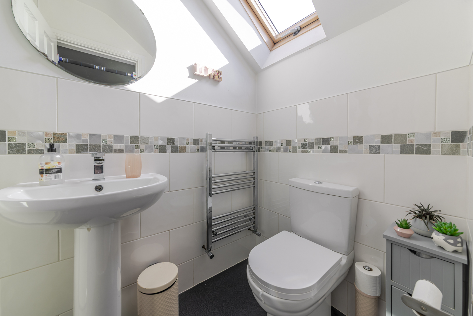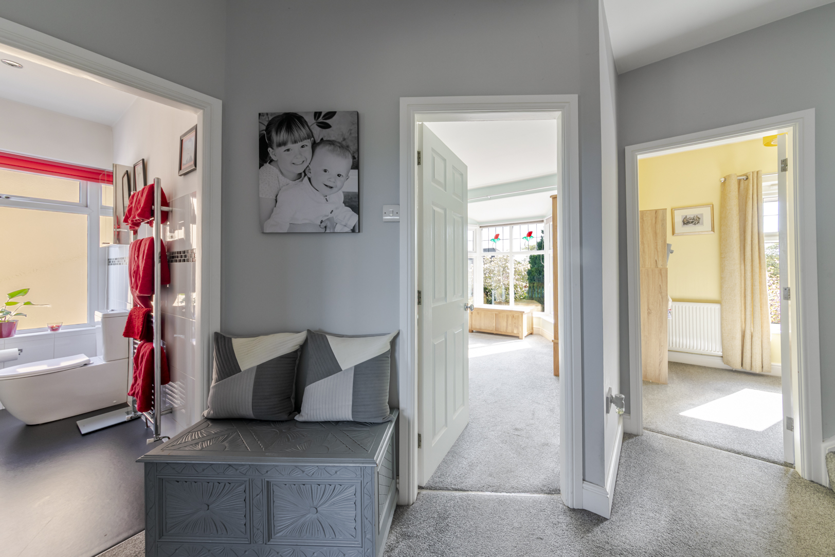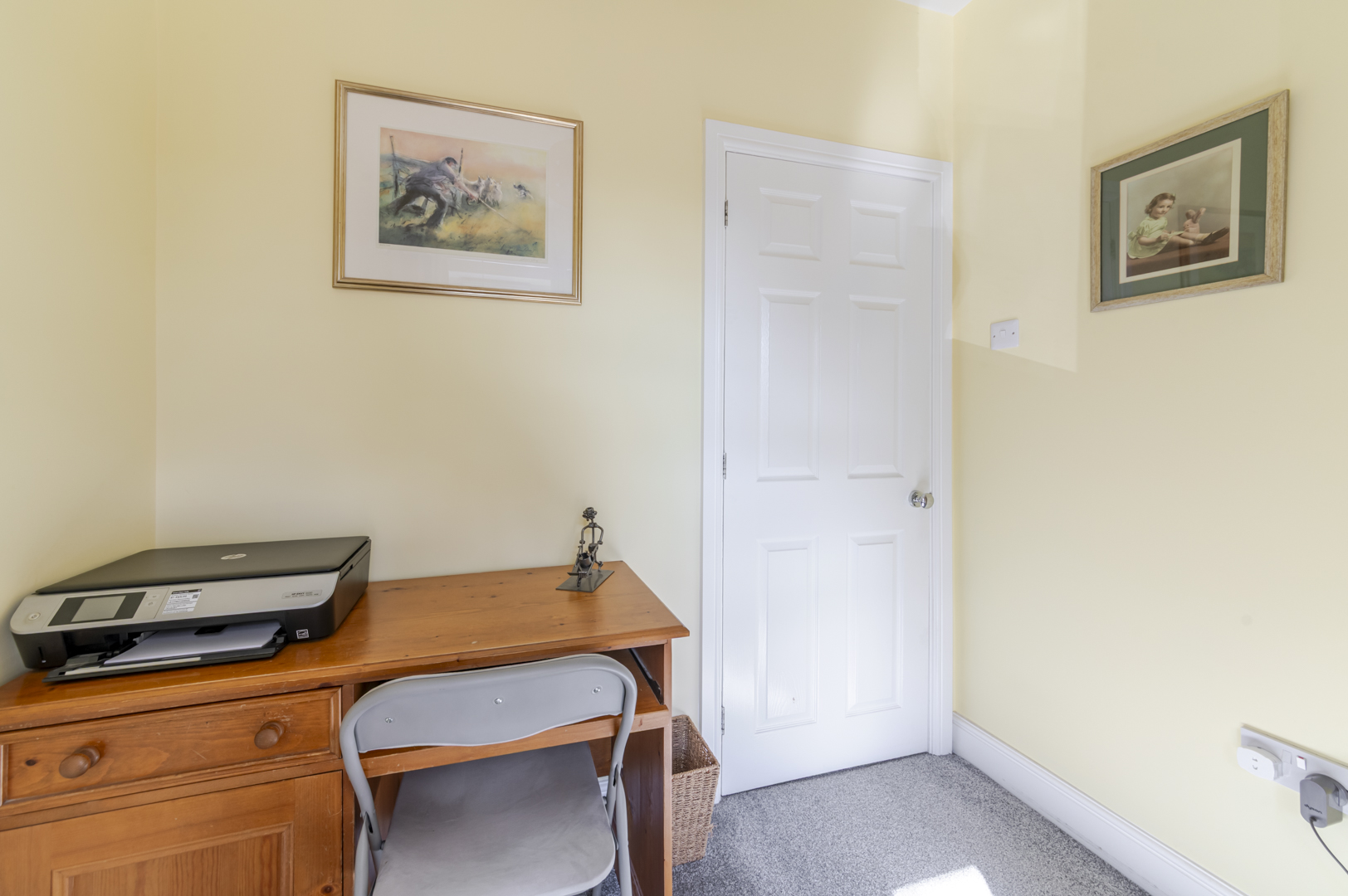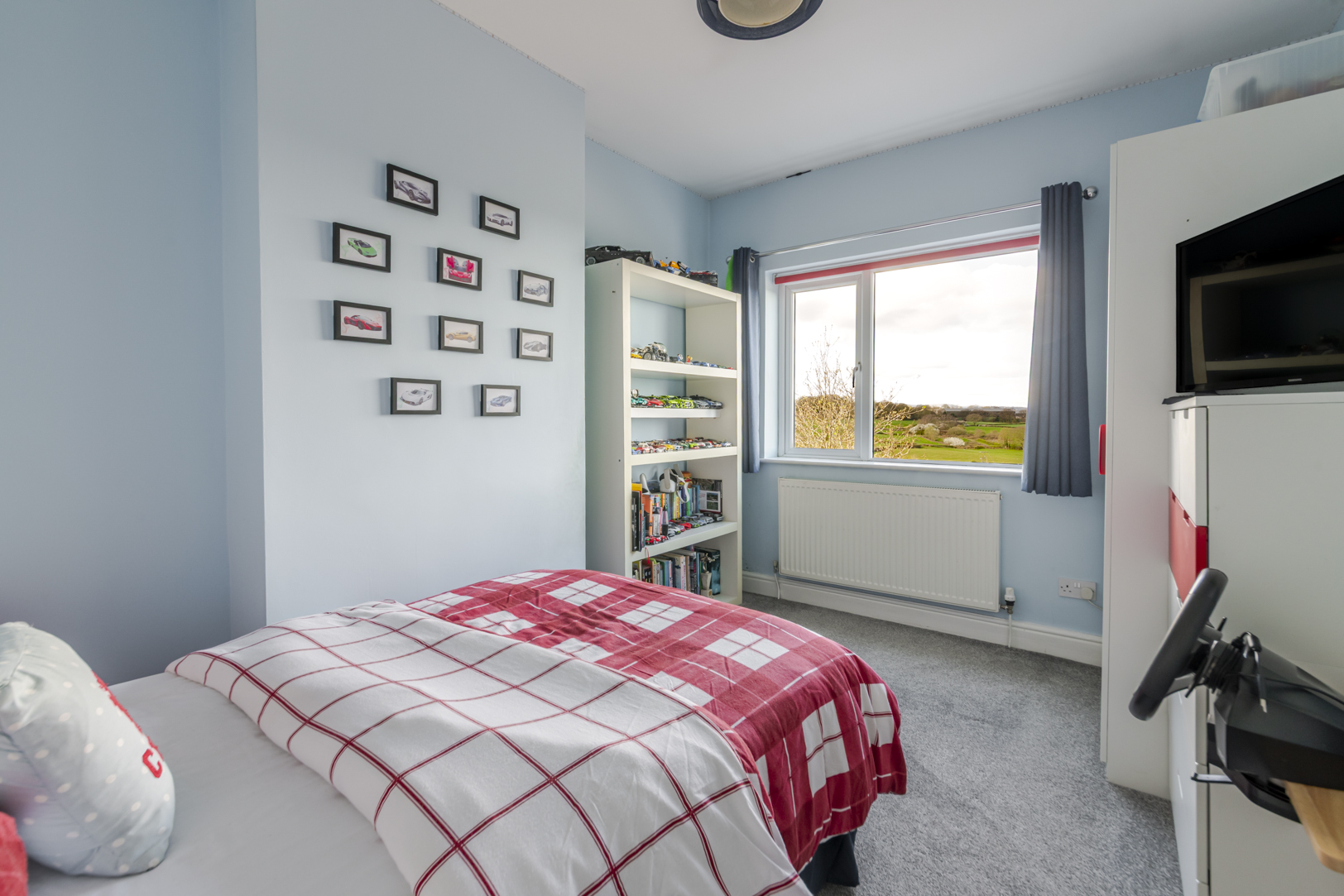 The accommodation continues to the second floor, where a converted loft provides a superb fifth bedroom. This space is particularly generous, complete with eaves storage, elevated views and the added benefit of an en suite—ideal for guests or older family members seeking their own space.