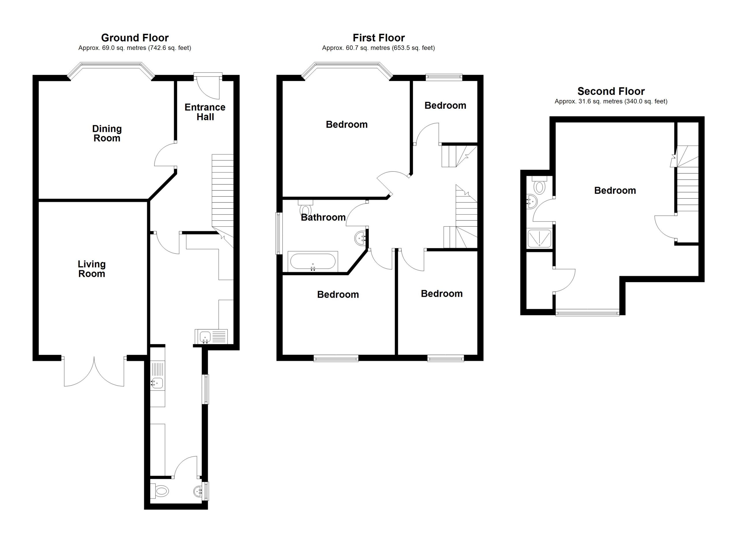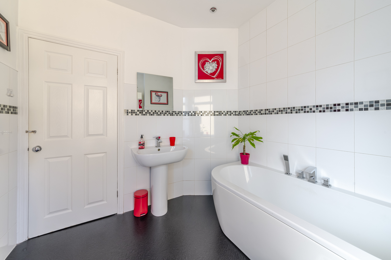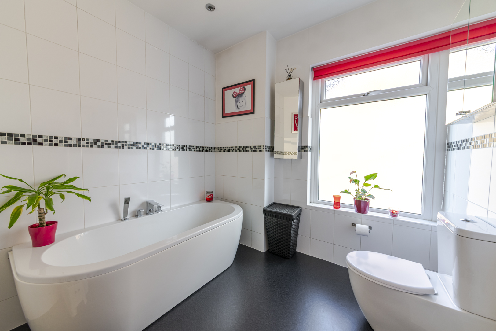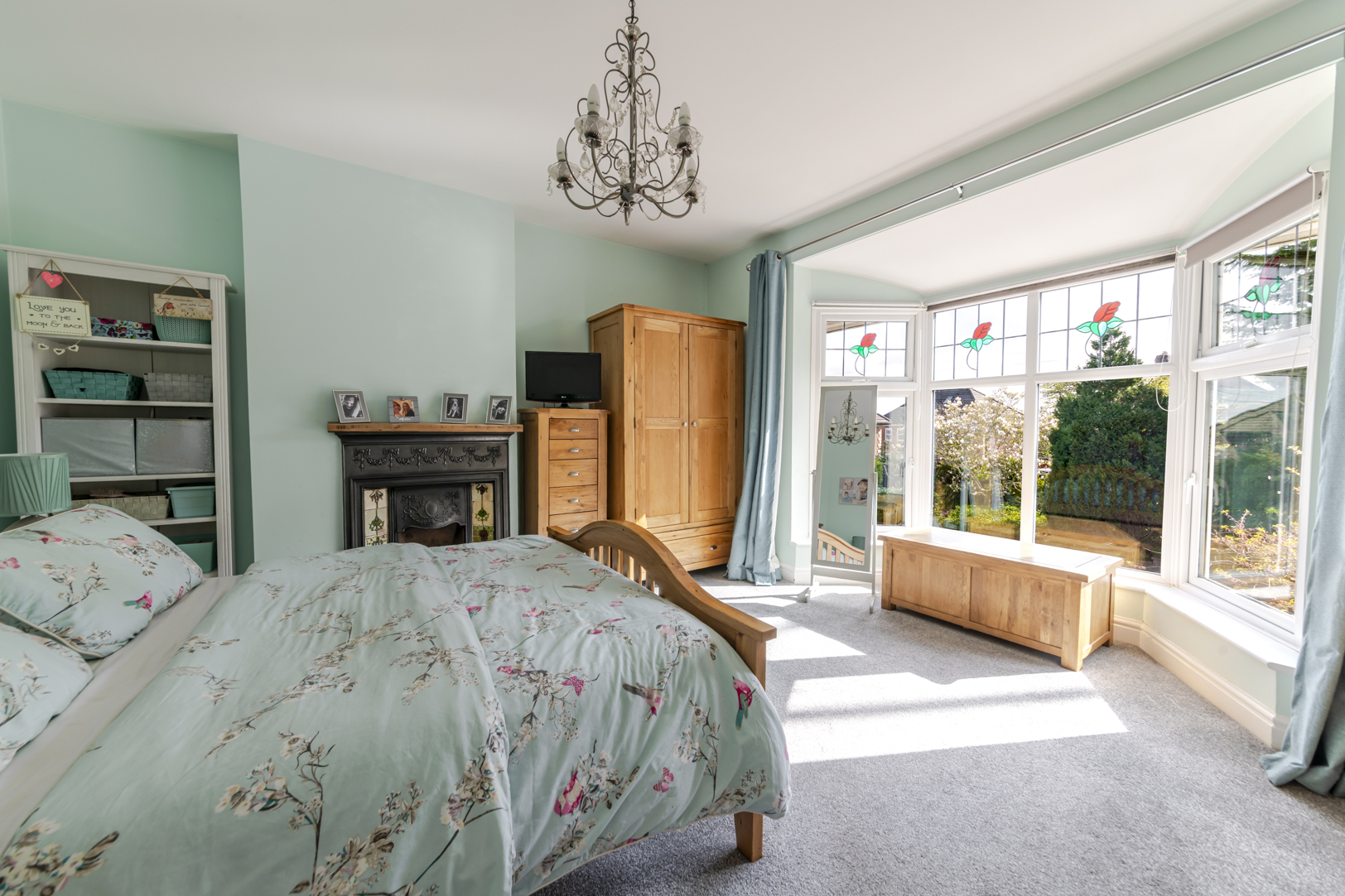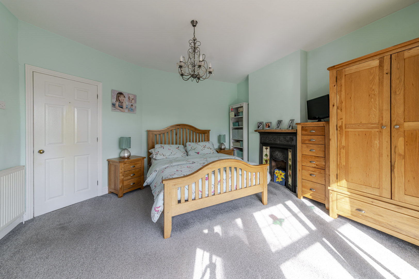 To the first floor are four bedrooms, including a spacious principal bedroom with a bay window and feature fireplace. The remaining bedrooms are all well proportioned, with one ideal as a home office if required. A modern family bathroom serves this level.