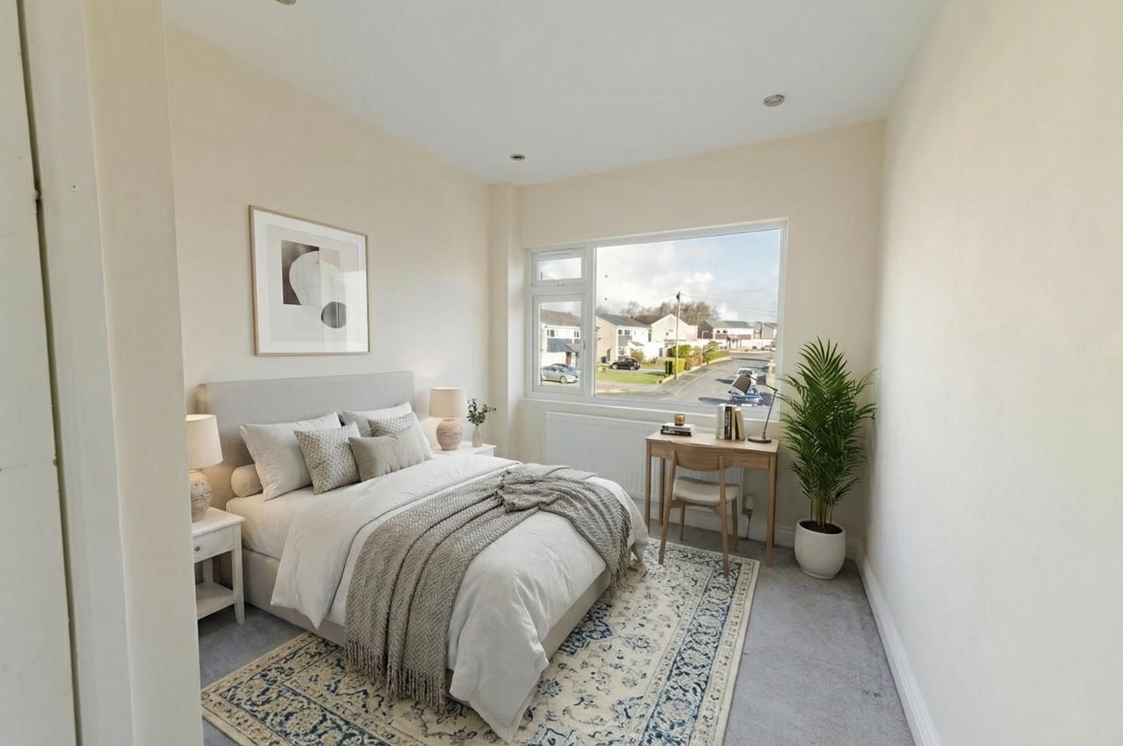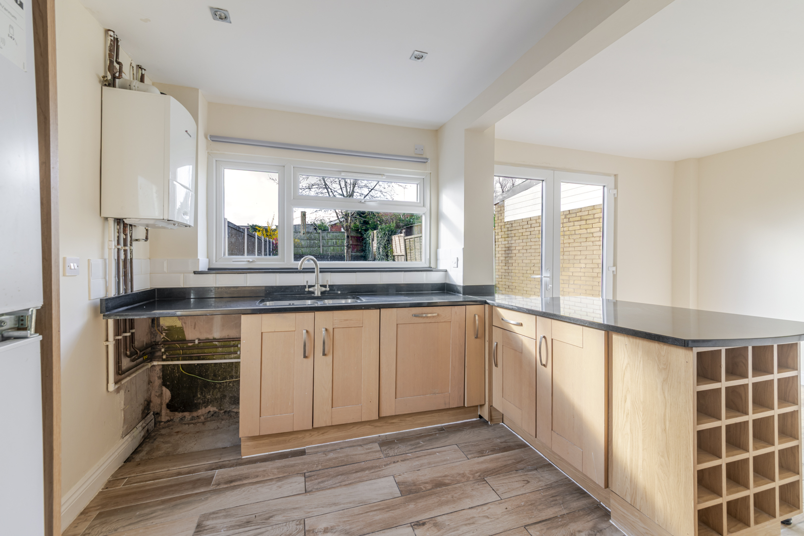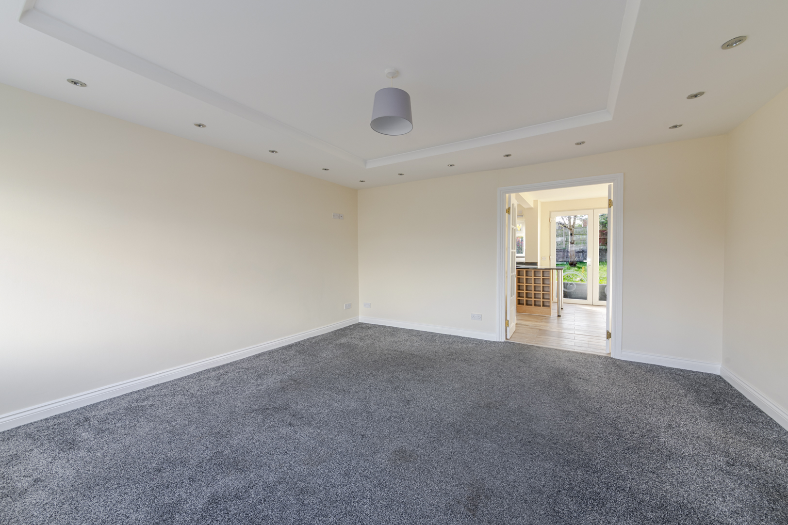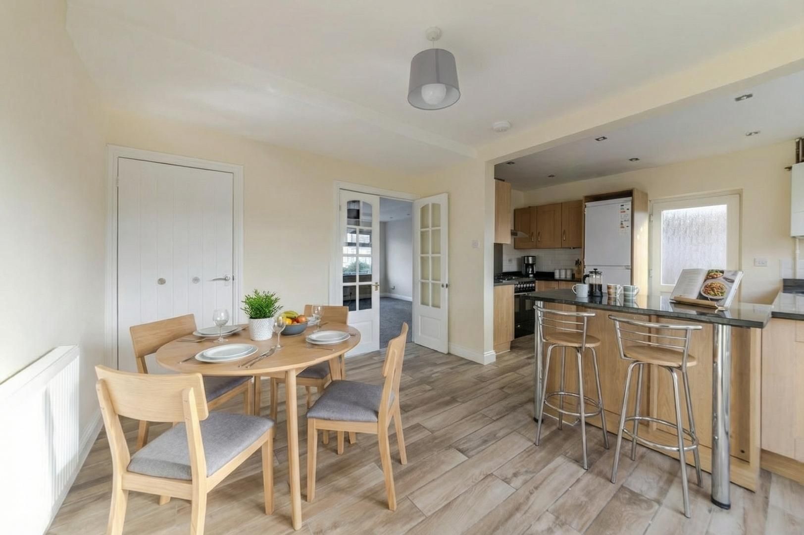Internally, the property opens into a welcoming hallway which leads through to a bright and spacious living room, enhanced by large windows that allow plenty of natural light to fill the space. Double doors then open into the kitchen and dining area, creating a sociable layout ideal for everyday living. The kitchen offers access to the side of the property, while patio doors from the dining area open onto the rear garden. A useful under stairs storage cupboard adds further practicality.