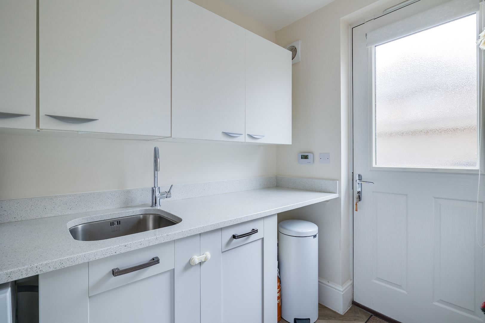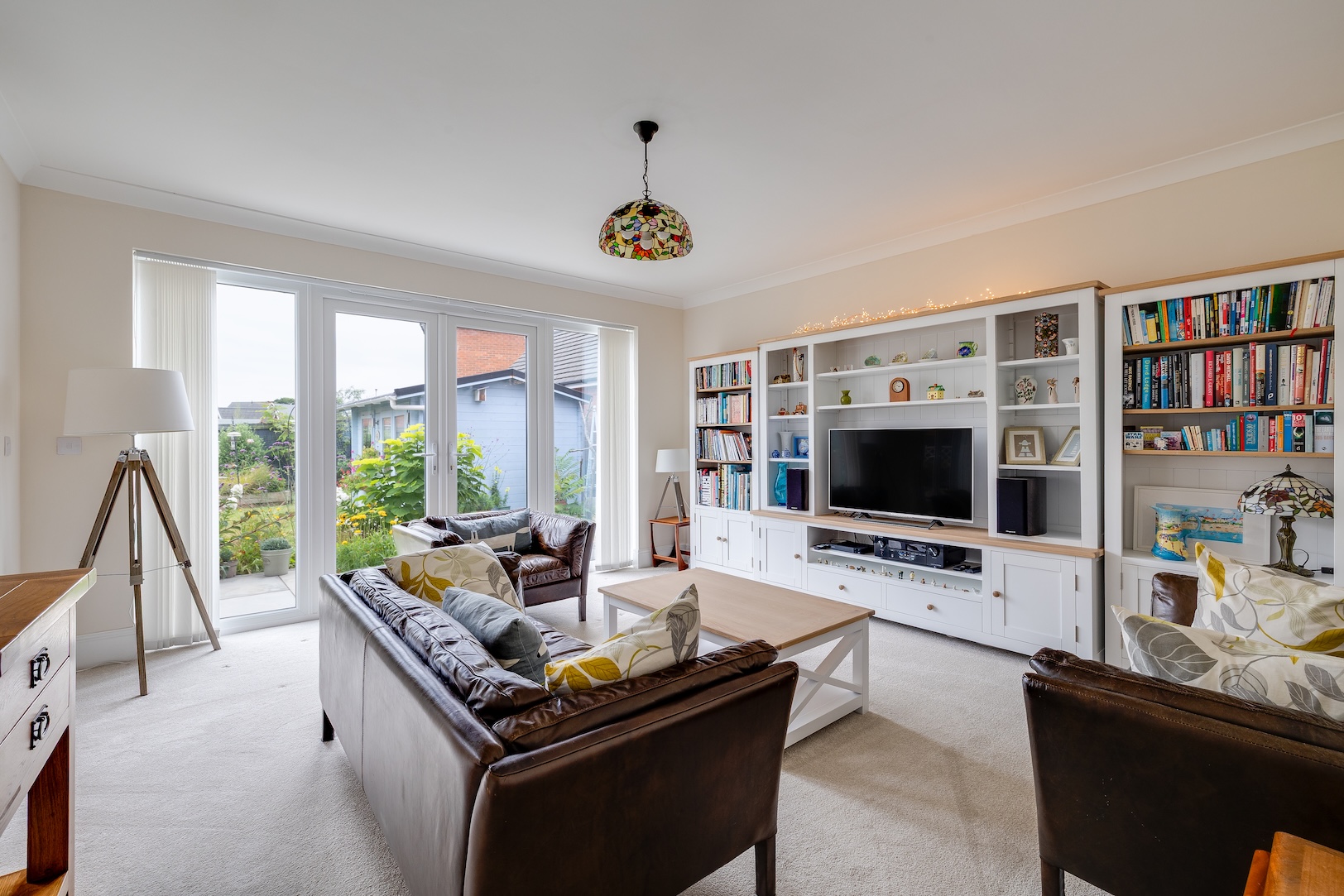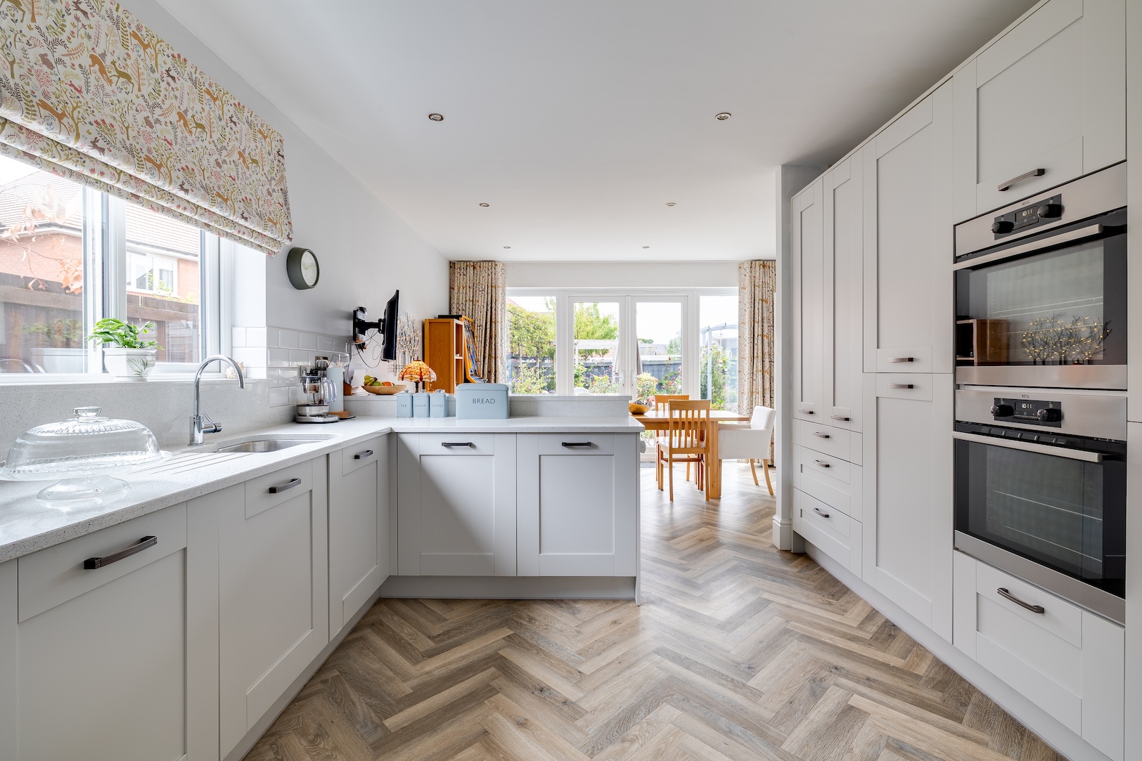 - Spacious living room which overlooks the rear garden, over 23ft long breakfast kitchen with Quartz work surfaces with UPVC French doors from both the living room and kitchen