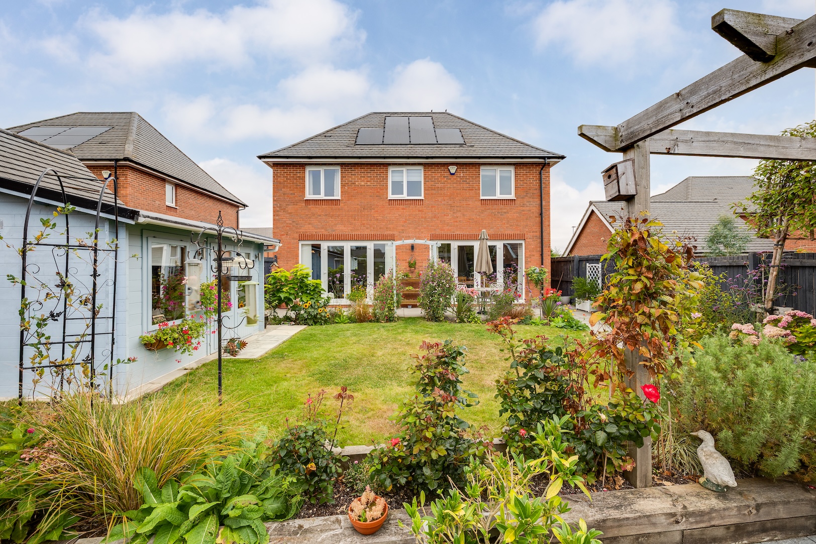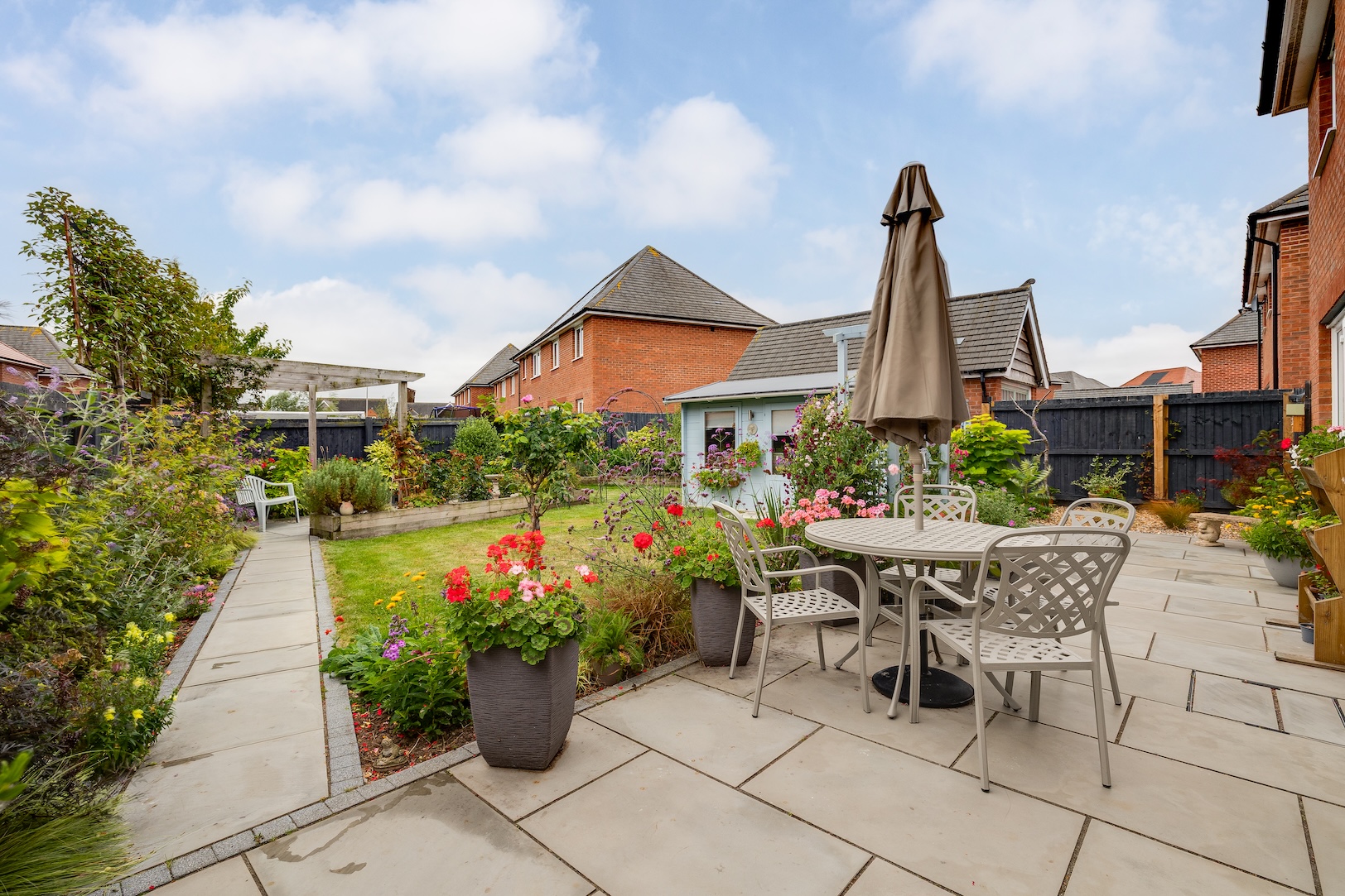 - Beautifully planted, private, sunny rear garden, timber summerhouse/home office which is insulated with power and lighting and Wifi making and ideal work hub