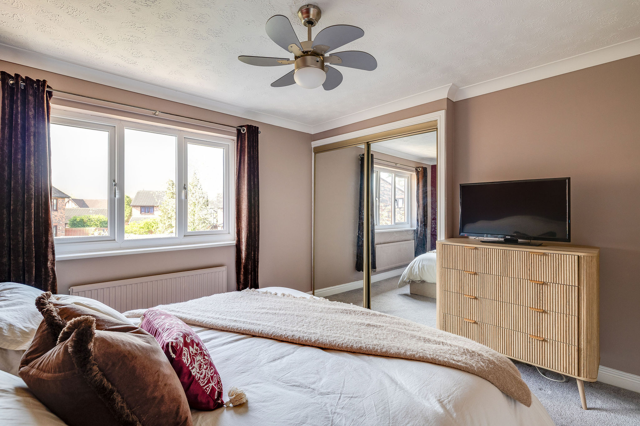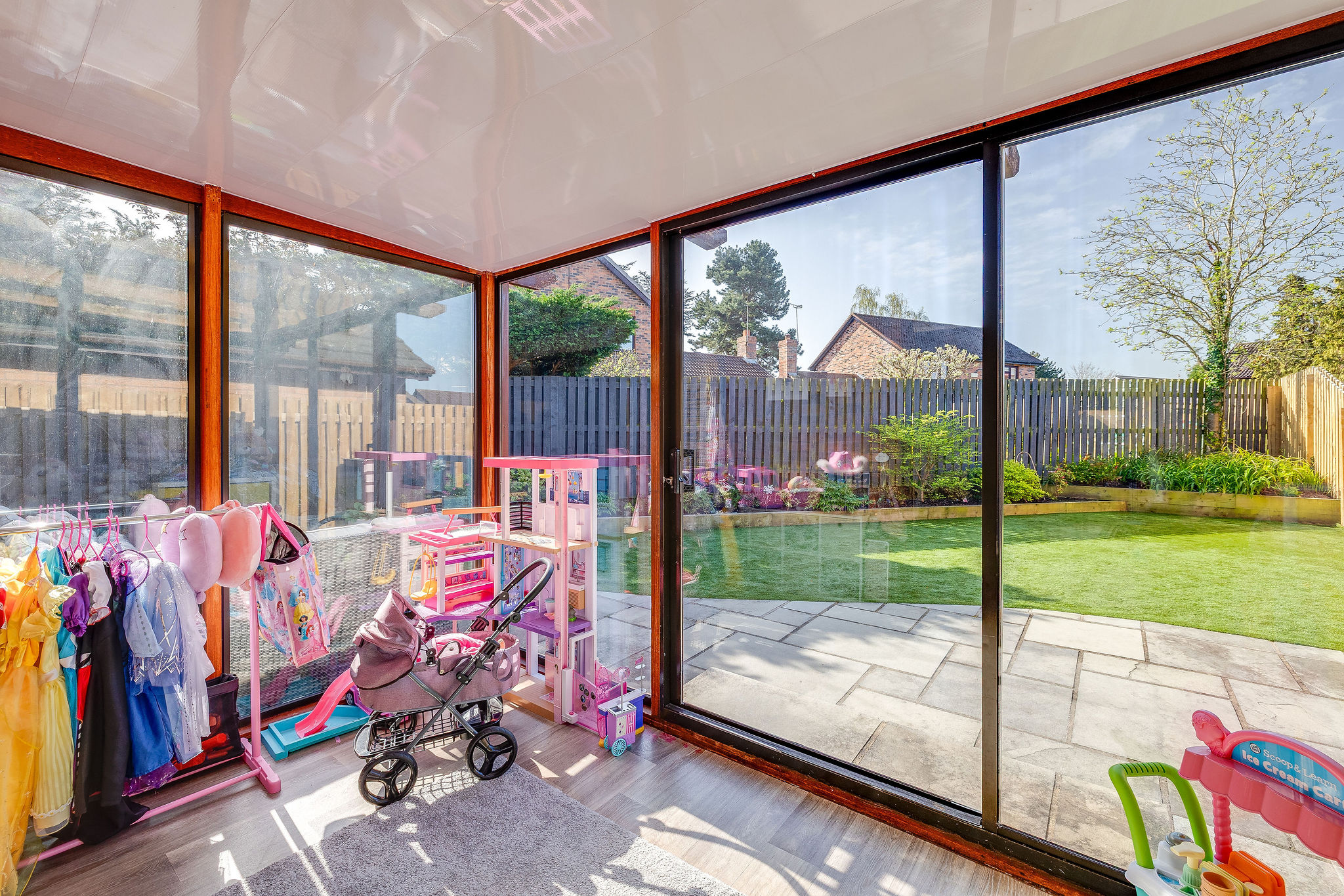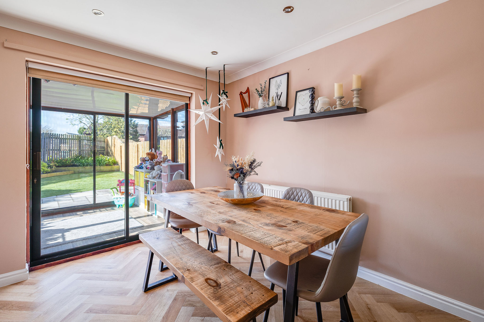 The rear garden is a real highlight, enjoying a sunny southerly aspect and designed for ease of maintenance. With paved seating areas, artificial lawn, raised borders and established planting, it offers a perfect balance of outdoor enjoyment and practicality.