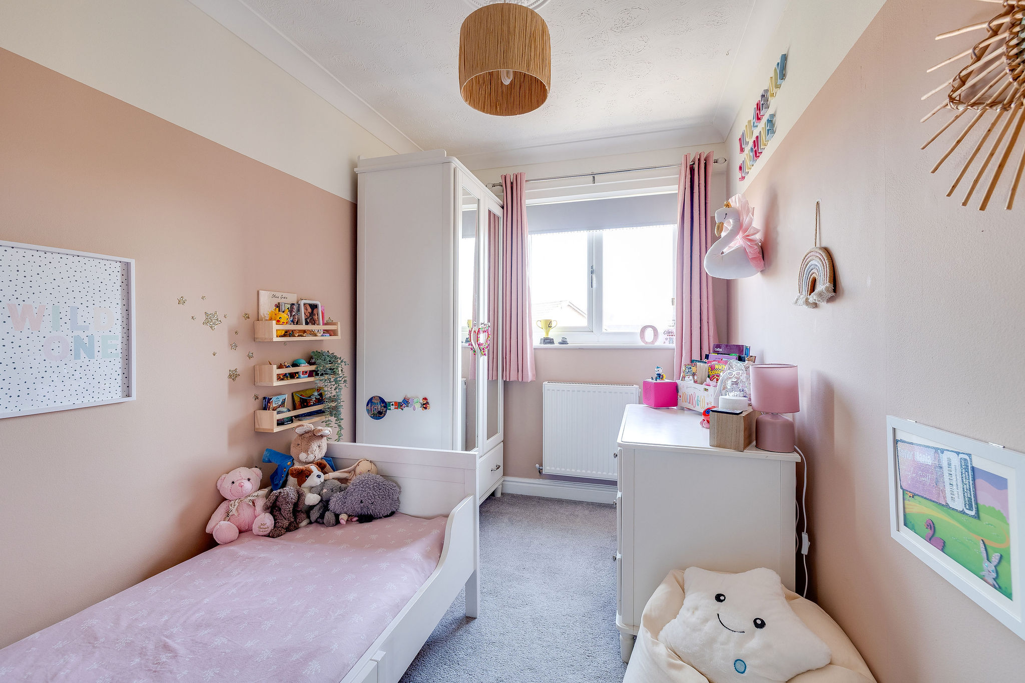 To the first floor are four bedrooms, including a generous principal bedroom with fitted wardrobes and a beautifully refitted en suite shower room. Bedroom two is a comfortable double with fitted storage, while bedrooms three and four are well suited to children, guests or home working. The family bathroom is a particularly good size and fitted with a modern white suite, shower over bath and useful storage.