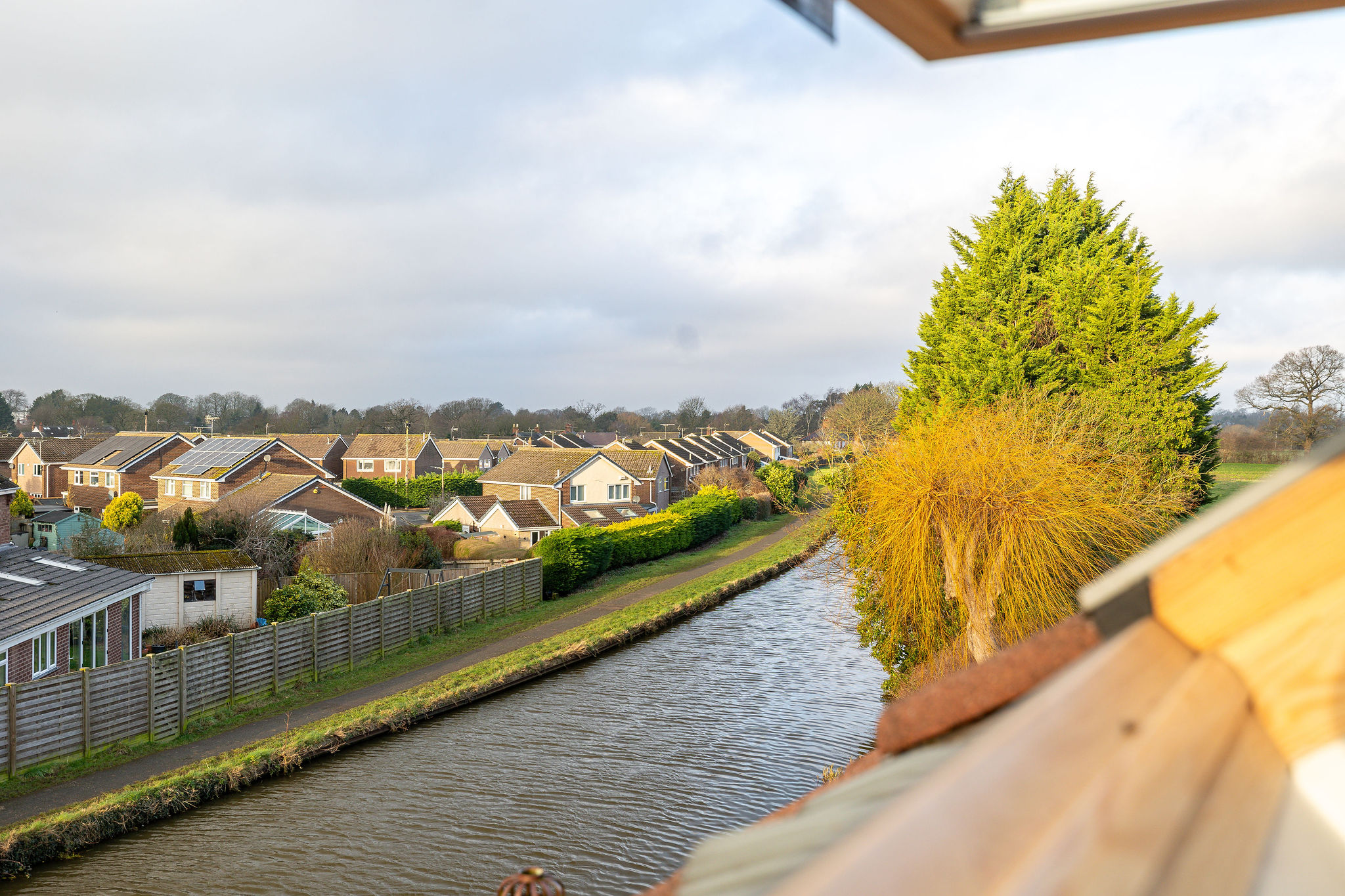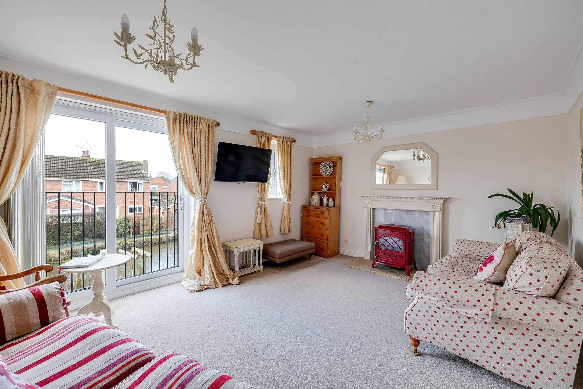 - First floor living room looking over the Shropshire Union Canal, featuring a Juliet balcony.