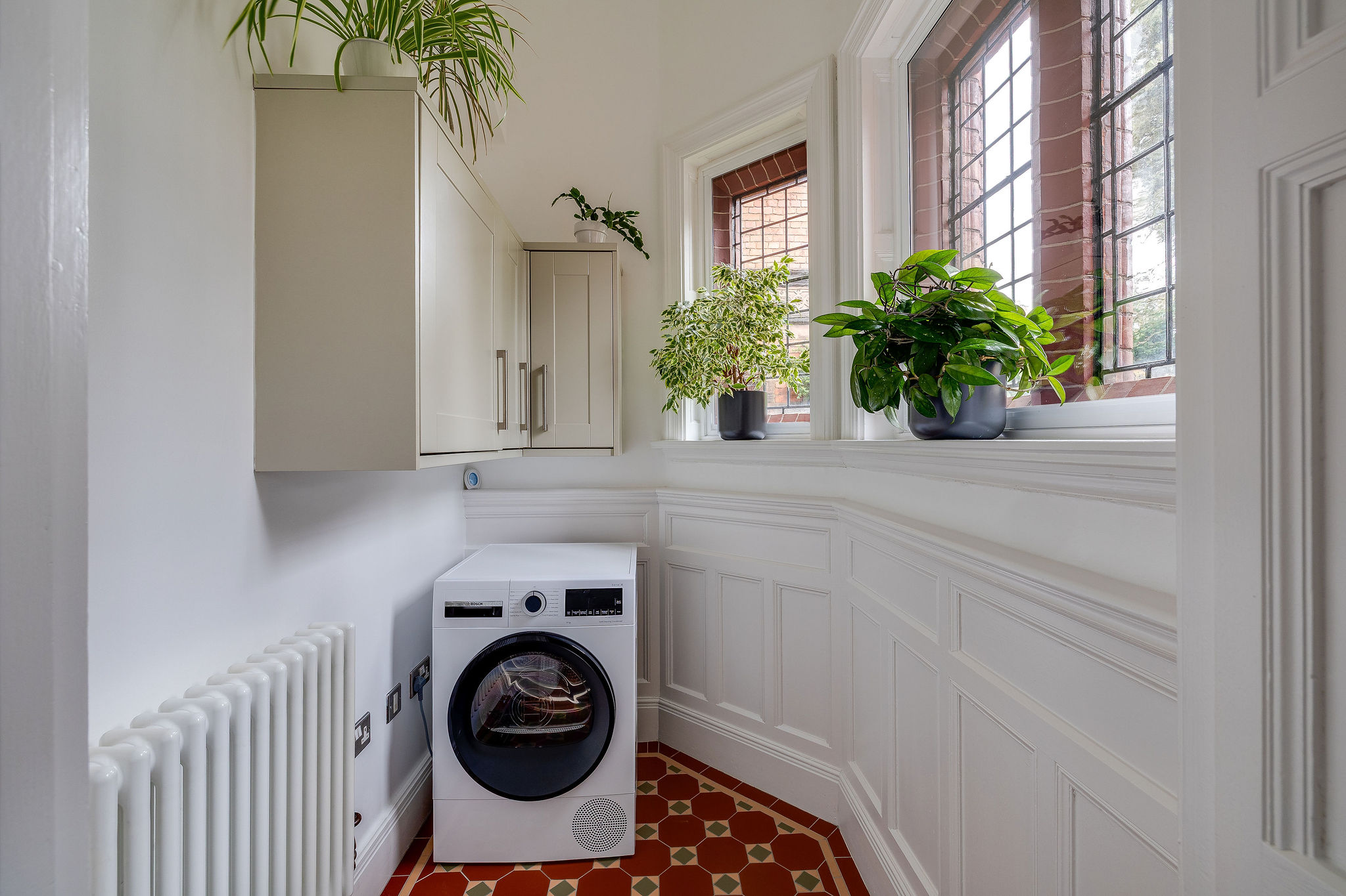 At the heart of the home is a spacious open plan living, kitchen and dining area. This impressive room offers both character and practicality, with hardwood flooring, feature fireplace and large windows allowing natural light to flood in. The kitchen is fitted with modern units and integrated appliances, while a separate utility room provides additional storage and functionality.